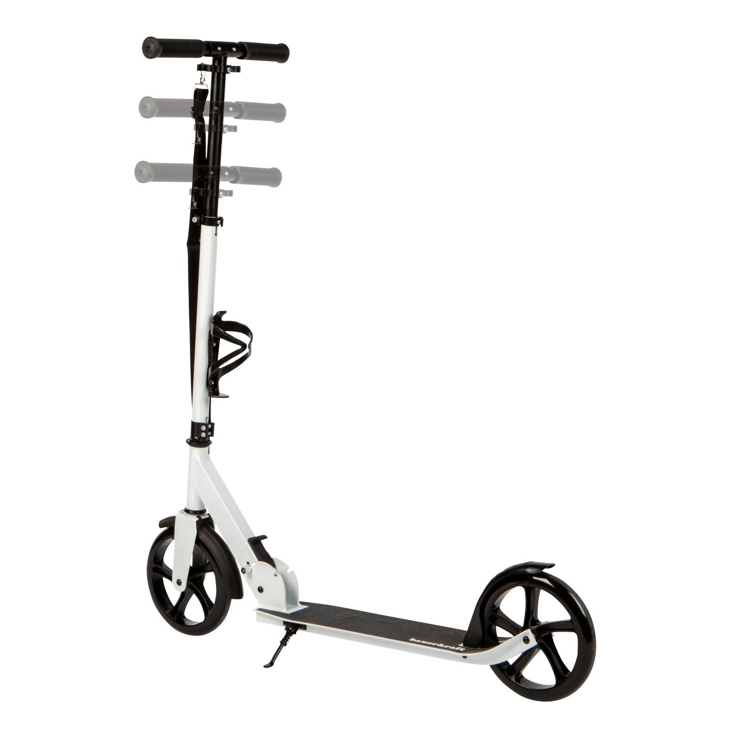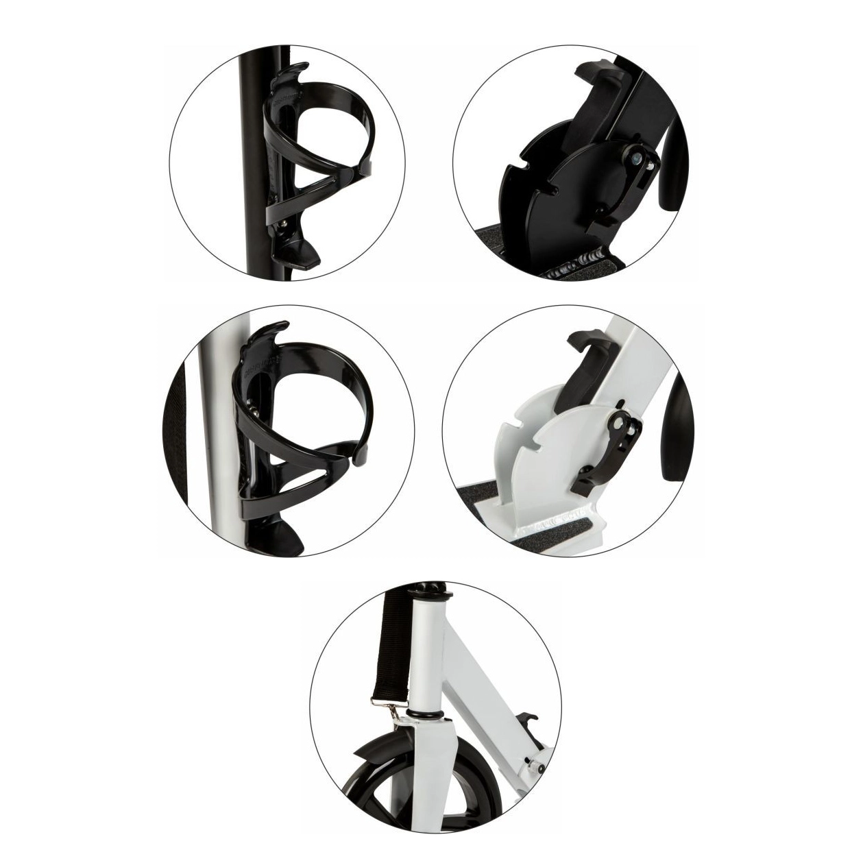 Für maximale Kontrolle und Sicherheit verfügt der Scooter über eine hintere Trittbremse, eine rutschfeste Trittfläche und ergonomische Griffe für einen bequemen Halt. Die verstellbare Lenkerhöhe 91–101 cm wächst mit dem Fahrer mit und unterstützt eine korrekte, ergonomische Haltung. Ein praktischer Ständer und ein Flaschenhalter runden die Ausstattung für den Alltag ab.