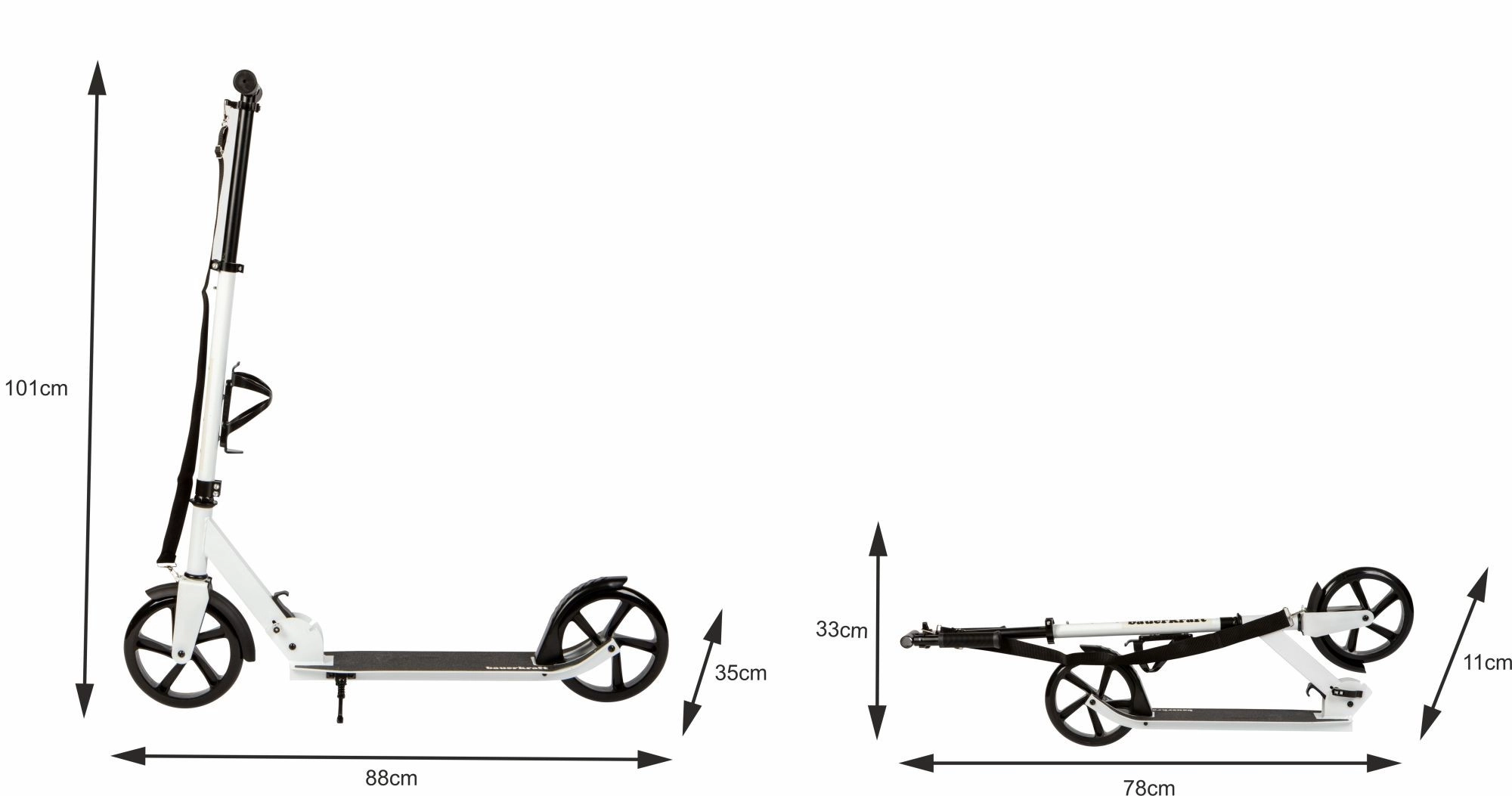 Dieser City-Scooter vereint Komfort, Sicherheit und Stil für den täglichen Arbeits- oder Schulweg sowie spaßige Ausfahrten. Dank der großen 200-mm-Räder mit ABEC-7-Lagern fährt er sanft über Asphalt, Gehwege und Radwege, während der Aluminiumrahmen für geringes Gewicht und hohe Haltbarkeit sorgt. Der Klappmechanismus ermöglicht einfaches Tragen und Verstauen zu Hause, in der Schule oder im Kofferraum.