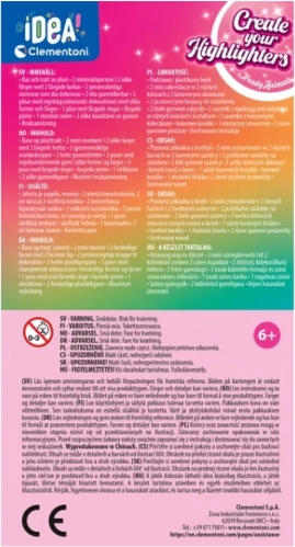 Enthalten sind mehrere farbige Tinten, leere Textmarkerkörper, kleine Verzierungen sowie Werkzeuge für die Montage. Kinder wählen die Farbe, befüllen den Stift, dekorieren ihn mit Figuren magischer Tiere und erhalten so ein originelles Schulaccessoire.