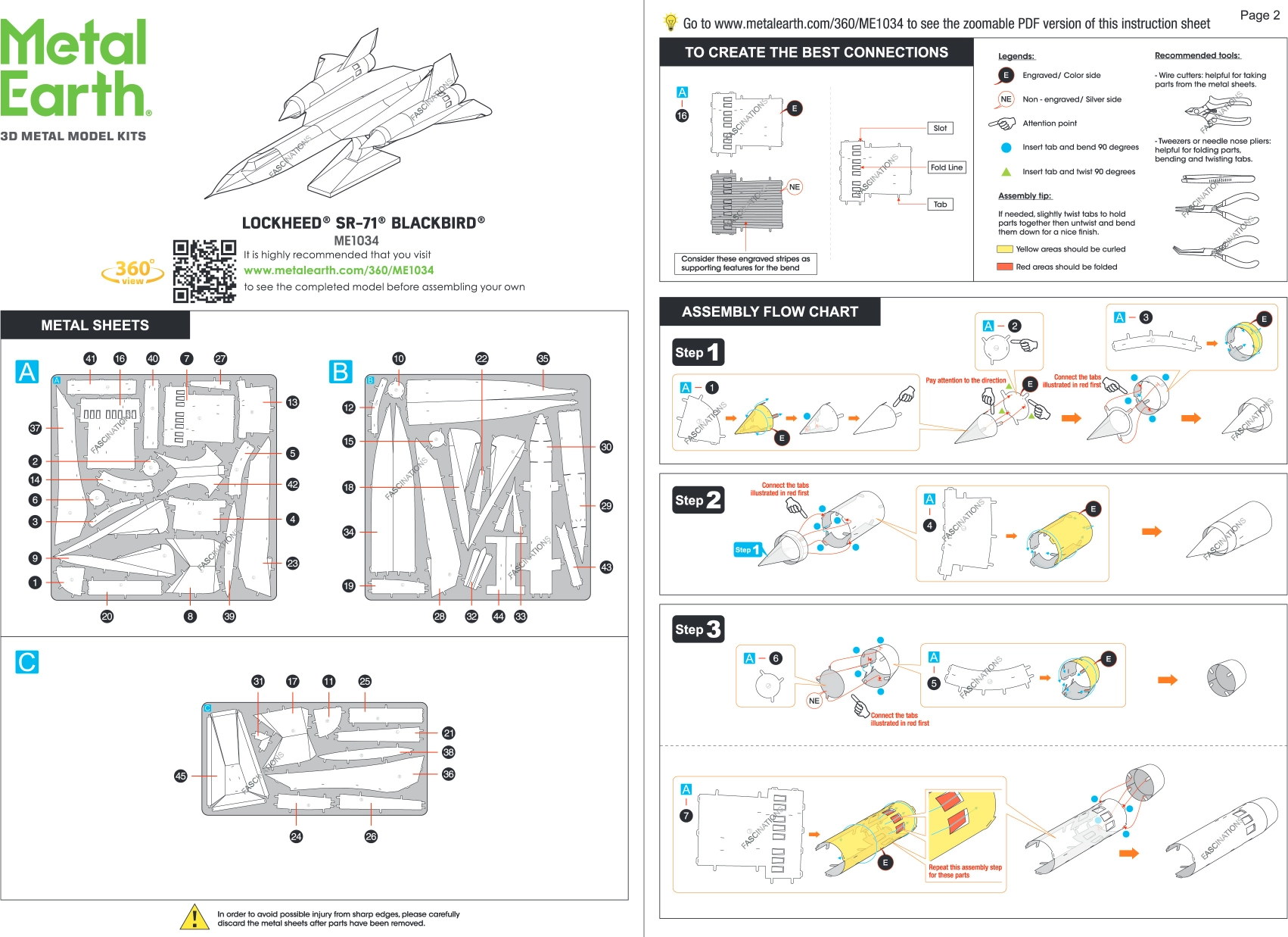 Metallbleche mit Teilen und Bauanleitung (ohne Werkzeug)