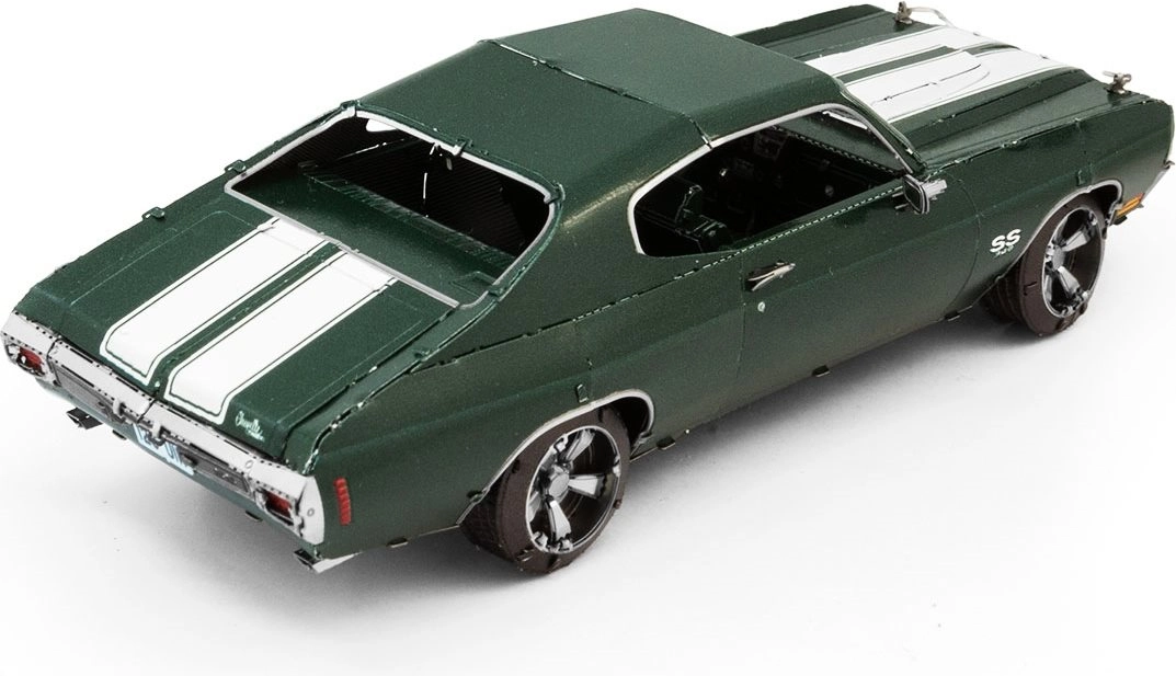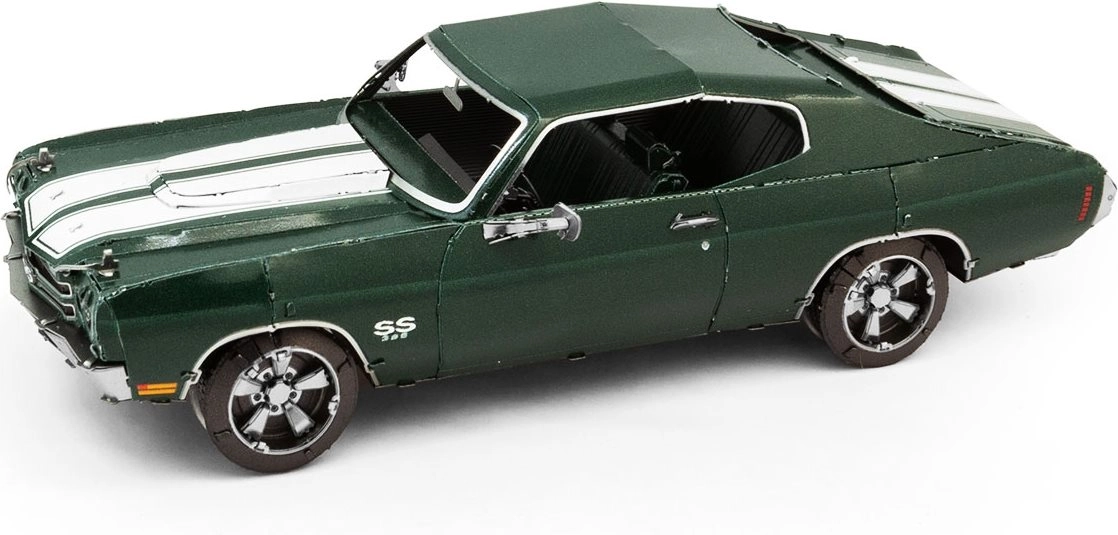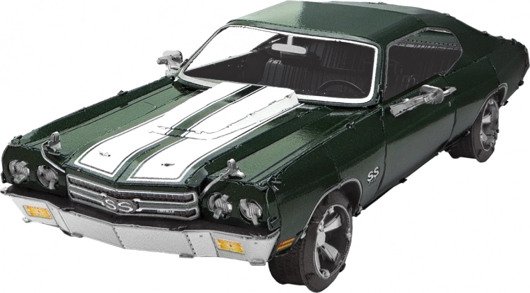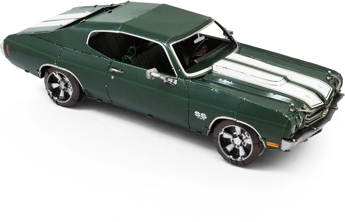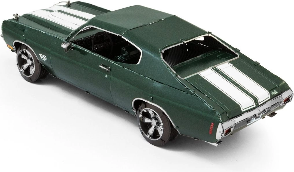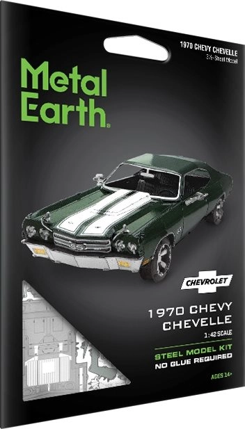 Entdecken Sie den Reiz der Metallbausätze von METAL EARTH und erschaffen Sie eine detailgetreue Miniatur des legendären Muscle Cars 1970 Chevrolet Chevelle. Die Teile werden aus Edelstahlblechen herausgelöst und mittels Laschen verbunden – ganz ohne einen Tropfen Klebstoff. Präzise Lasergravuren verleihen dem Modell einen authentischen Look.