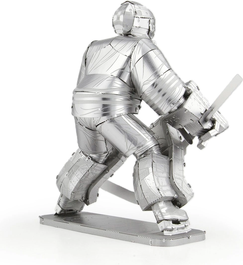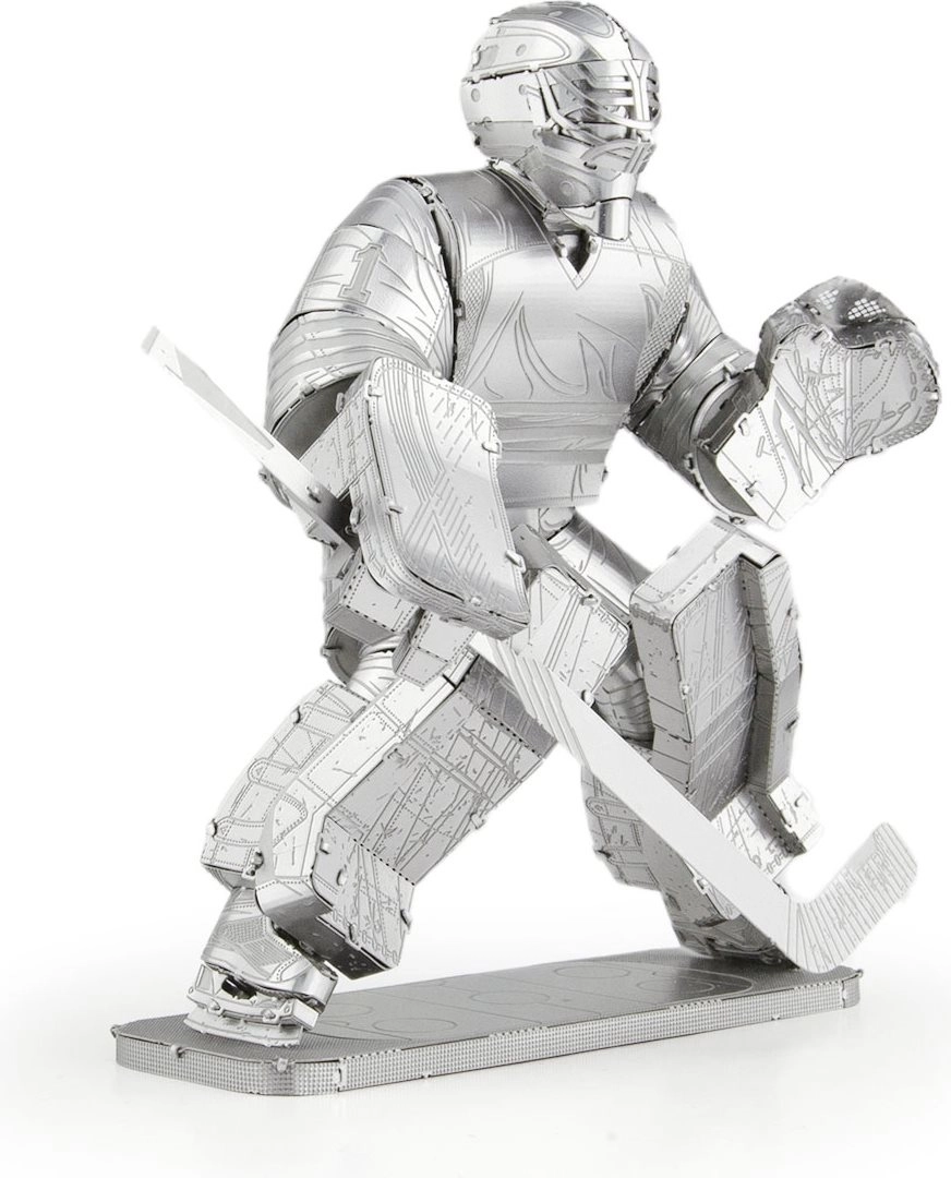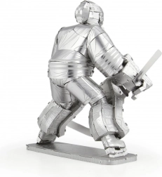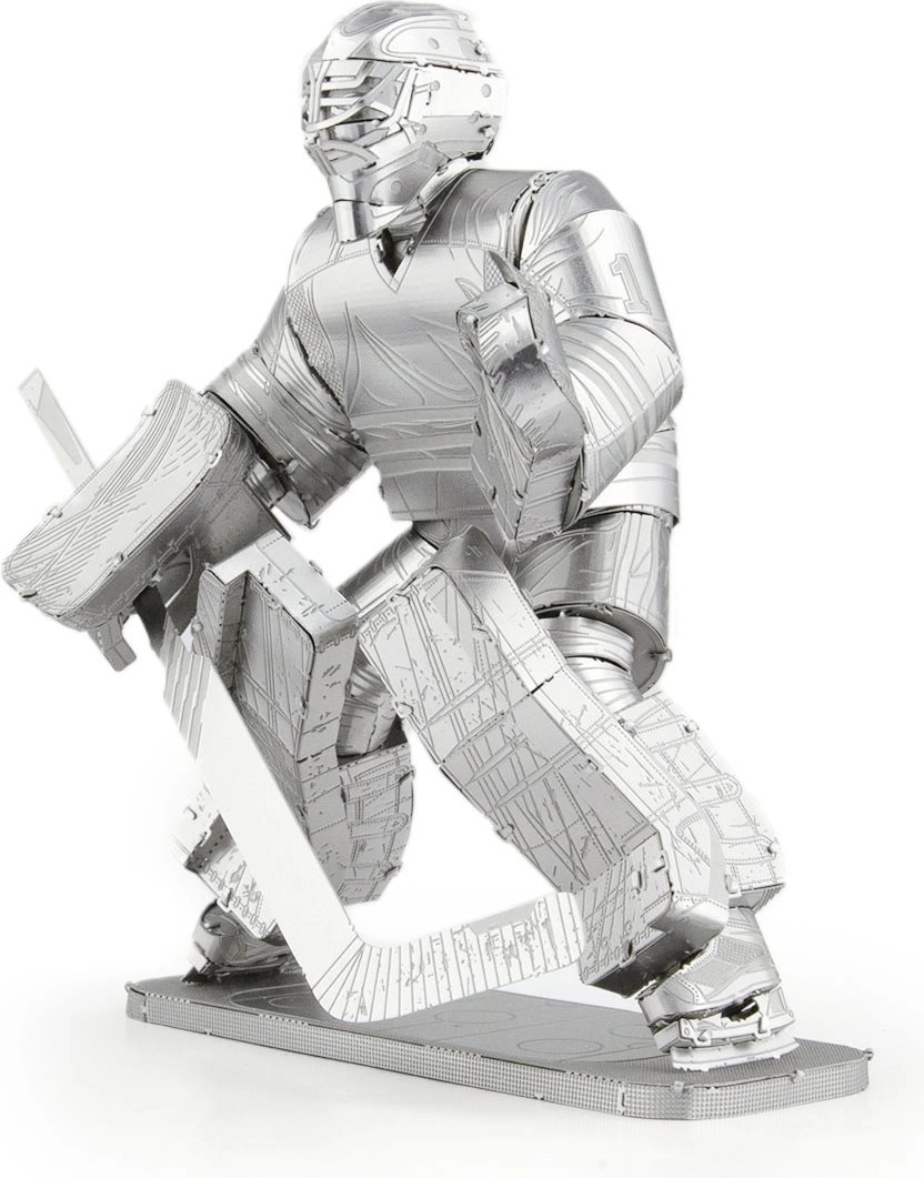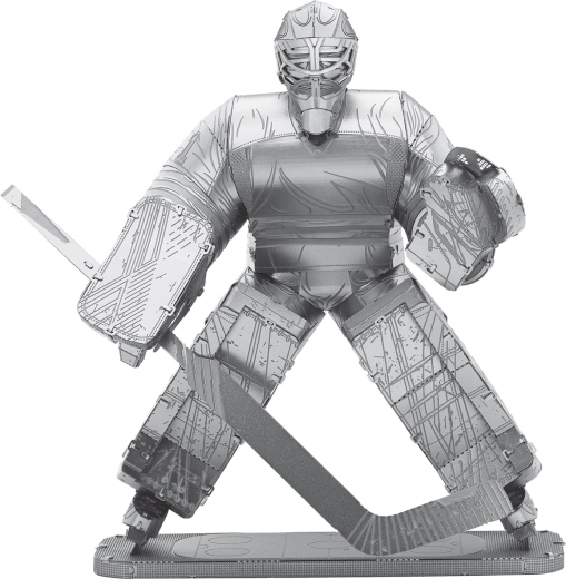 Entdecken Sie eine spannende Herausforderung mit dem Metall-3D-Puzzle, das Sie aus flachen Stahlblechen in eine realistische Miniatur eines Eishockey-Torwarts verwandeln. Dank präziser Lasergravur kommen Schoner, Maske und Schläger in beeindruckenden Details zur Geltung. Der Zusammenbau erfordert keinen Klebstoff – die Teile werden über Verriegelungen verbunden.