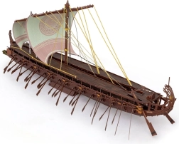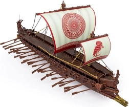 Das Modell beeindruckt mit zahlreichen Rudern, verzierten Segeln und der geformten Galionsfigur – ideal für Liebhaber von Geschichte und Design.