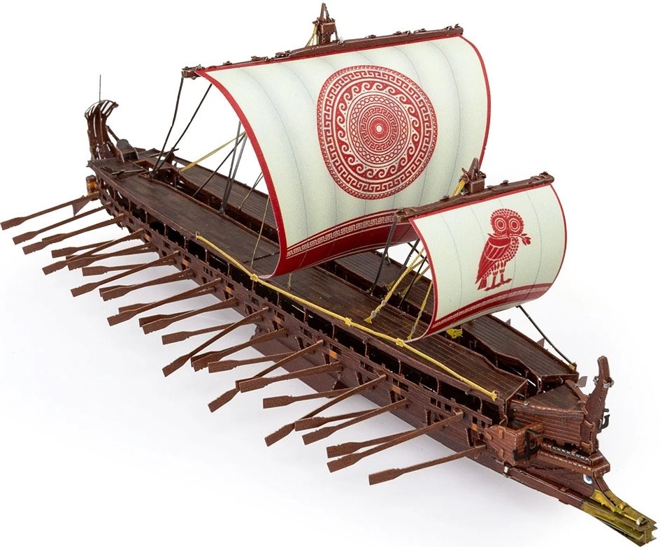 Entdecken Sie den Zauber der antiken Seefahrt mit dem Metall-3D-Modell einer griechischen Triere. Die METAL EARTH Premium Serie bietet dank Lasergravur extra feine Details, die Segel, Ruder und Decksausstattung hervorheben. Das Modell ist für alle gedacht, die präzises Arbeiten, Geschichte und designstarke Deko schätzen.