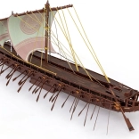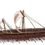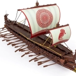 Feine Linien der Segel, Beplankung des Rumpfes und Deckselemente sind mit hoher Präzision ausgeschnitten und graviert – für das authentische Erscheinungsbild der Triere.