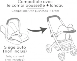 Der Wagen bietet eine geschmeidige Handhabung mit schwenkbaren Vorderrädern und einen leisen Lauf der Räder mit geräuschdämpfender Schicht. Die strapazierfähigen Bezüge aus Kunststoffgewebe sind pflegeleicht – einfach mit einem feuchten Tuch abwischen. Durch den ergonomischen Griff (65 cm) ist er für Kinder unterschiedlichen Alters bequem. Geeignet für Puppen bis 42 cm.