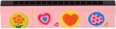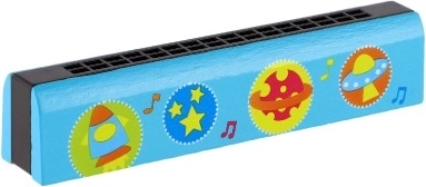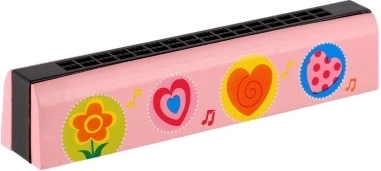 Die Harmonika ist in mehreren Farbvarianten mit verspielten Motiven (Herzchen, Tiere, Weltraum, Noten) erhältlich, sodass jedes Kind sein Lieblingsdesign findet. Die kompakten Maße ermöglichen einfaches Mitnehmen auf Reisen, zu den Großeltern oder in den Kindergarten.