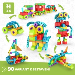 Der Starterkoffer mit 1238 Teilen bietet bis zu 90 verschiedene Vorlagen – von Tieren und Figuren bis zu Autos, Hubschraubern oder Fantasiewesen. Das Konstruktionsspiel fördert STEM-Prinzipien (Wissenschaft, Technik, Technologie, Mathematik) und entwickelt Hand-Auge-Koordination, Vorstellungskraft sowie Problemlösefähigkeiten.