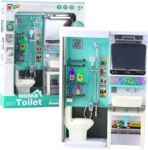 Dieses detailreich gestaltete Badezimmer-Set versetzt Kinder in die Welt alltäglicher Tätigkeiten. Es beinhaltet eine Toilette, ein Waschbecken mit beleuchtetem Spiegel, eine Dusche sowie ein buntes Set an Accessoires für Körper- und Zahnpflege. Interaktive Licht- und Soundeffekte sorgen für Authentizität und zusätzlichen Spielspaß.