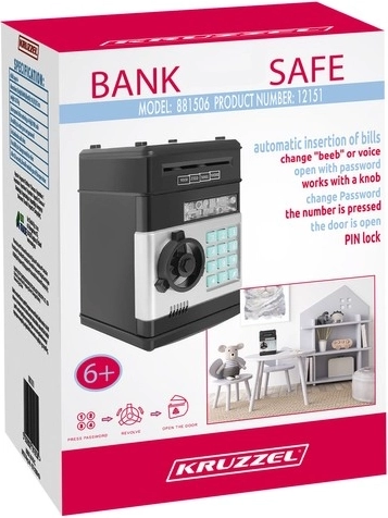 Der elektronische Tresor für Kinder ist eine attraktive Alternative zur traditionellen Sparbüchse. Er erlaubt es, sowohl Geldscheine als auch Münzen sicher zu lagern. Das Kind kann seine Ersparnisse nach Eingabe des richtigen PIN-Codes entnehmen, der nach Wunsch eingestellt werden kann.