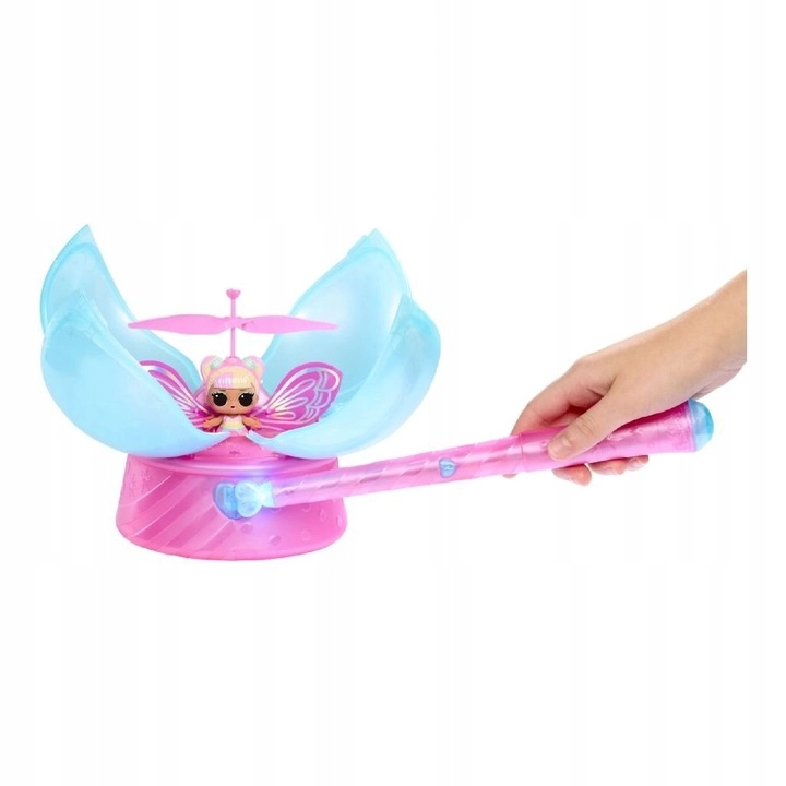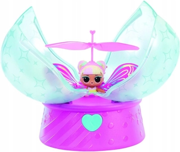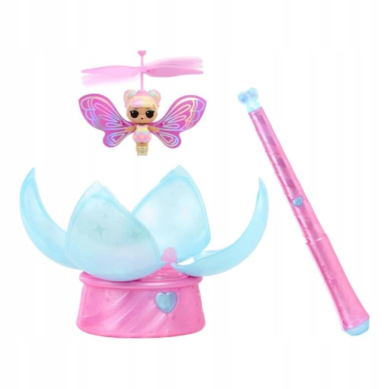 Die magische fliegende Fee L.O.L. Surprise! Flower Child verzaubert jedes Kinderzimmer. Tippe einfach auf das Herz der Blume und die Fee schwebt elegant über die Basis. Das Fliegen ist intuitiv – die Fee reagiert auf Handbewegungen oder ein leichtes Schwenken mit dem beiliegenden Zauberstab.