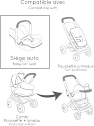 3-in-1-Autositz und Hochstuhl für Puppen, beige