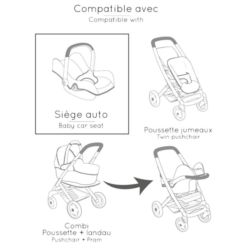 Eltern schätzen das einfache und schnelle Umschalten zwischen den Modi, die sichere und stabile Verarbeitung sowie das angenehme, universelle Erscheinungsbild in Beige. Das Set ist für Puppen bis 42 cm geeignet und ergänzt jedes Kinderzimmer perfekt.