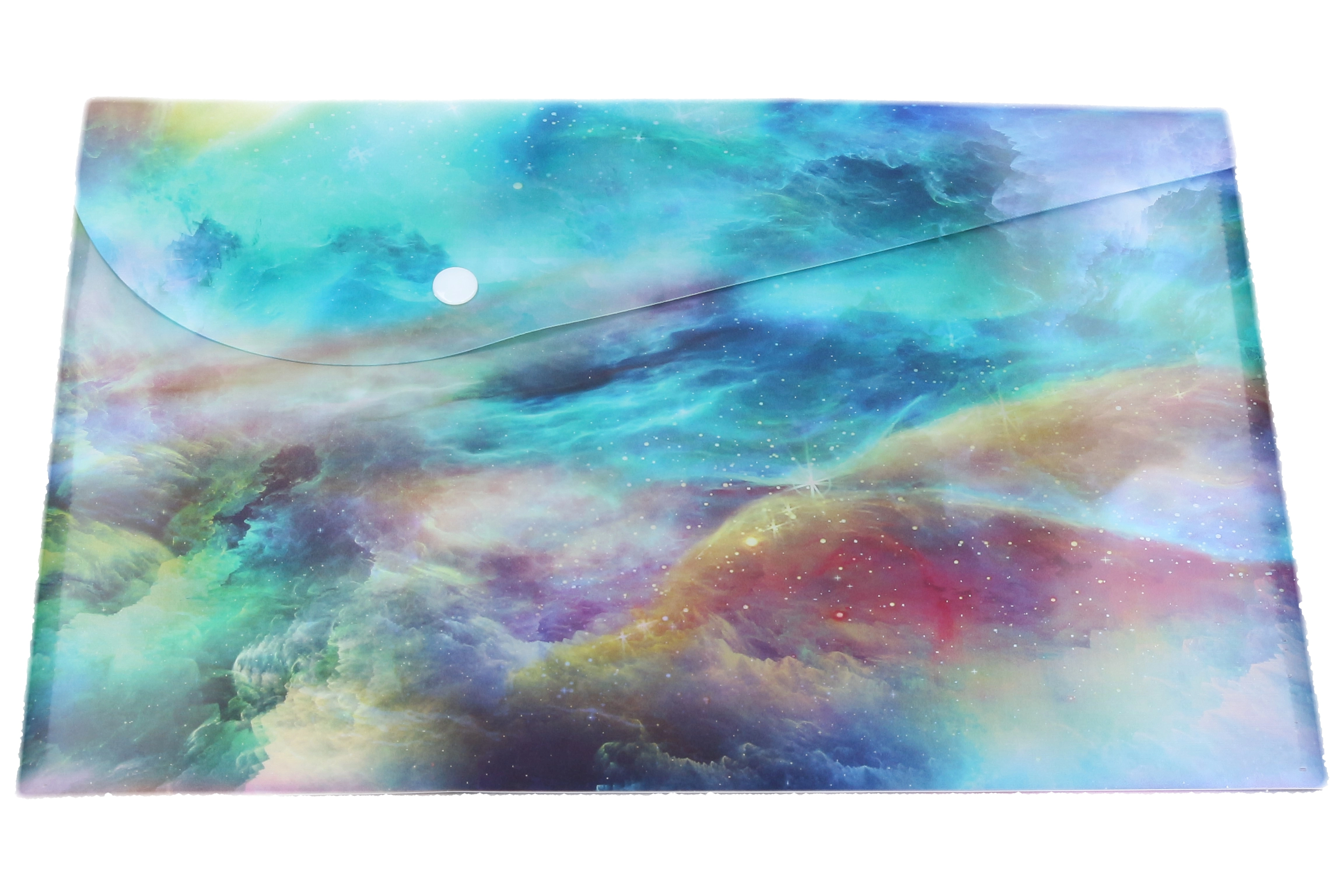 Das Weltraum-Design mit Galaxie-Motiven verleiht Ihren Arbeitsmaterialien einen originellen Look. Die Mappe ist ideal zur Organisation von A4-Dokumenten, Quittungen, Arbeitsblättern und Schulheften. Durch das halbtransparente Material sehen Sie schnell, was sich innen befindet, während der Inhalt geschützt bleibt.
