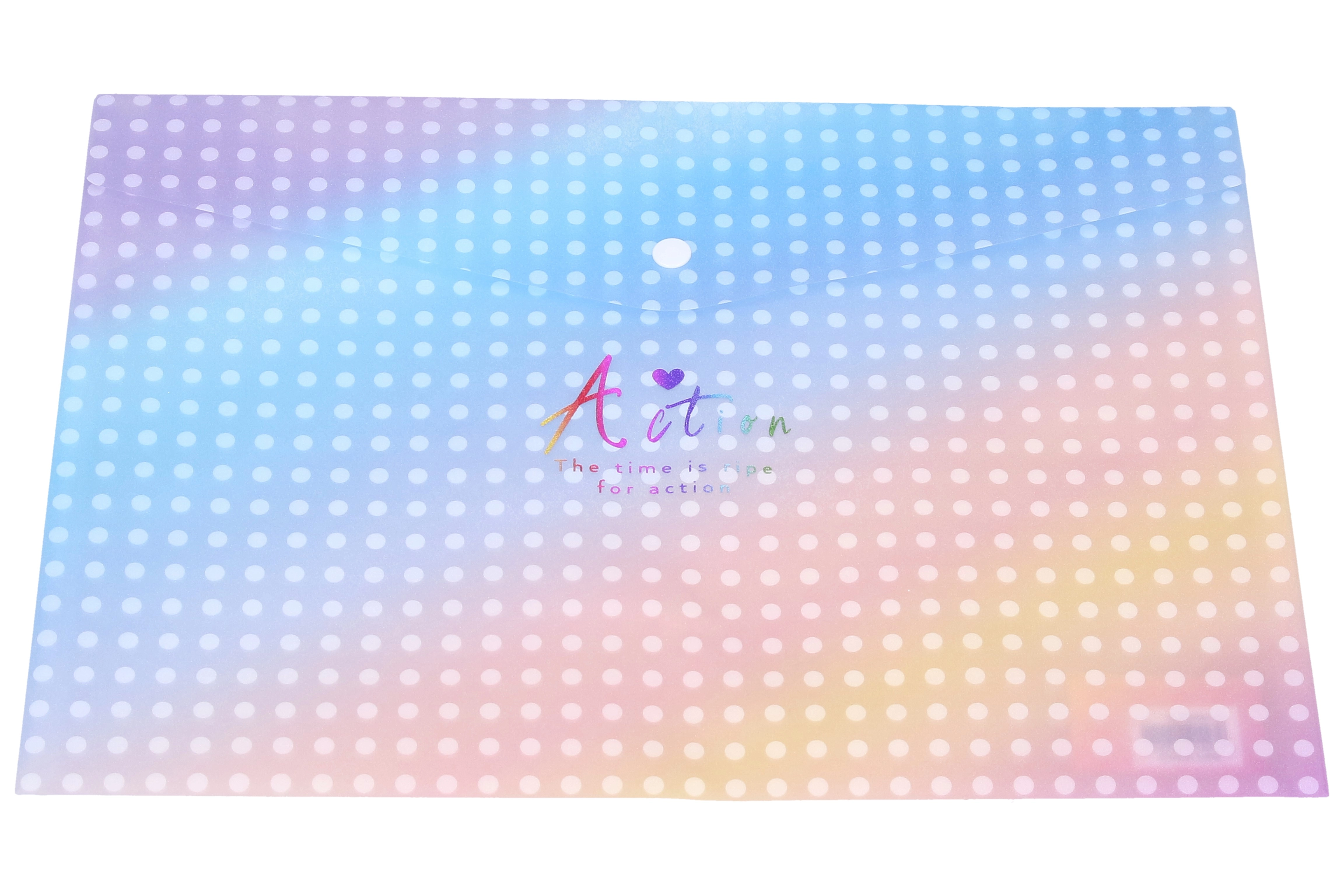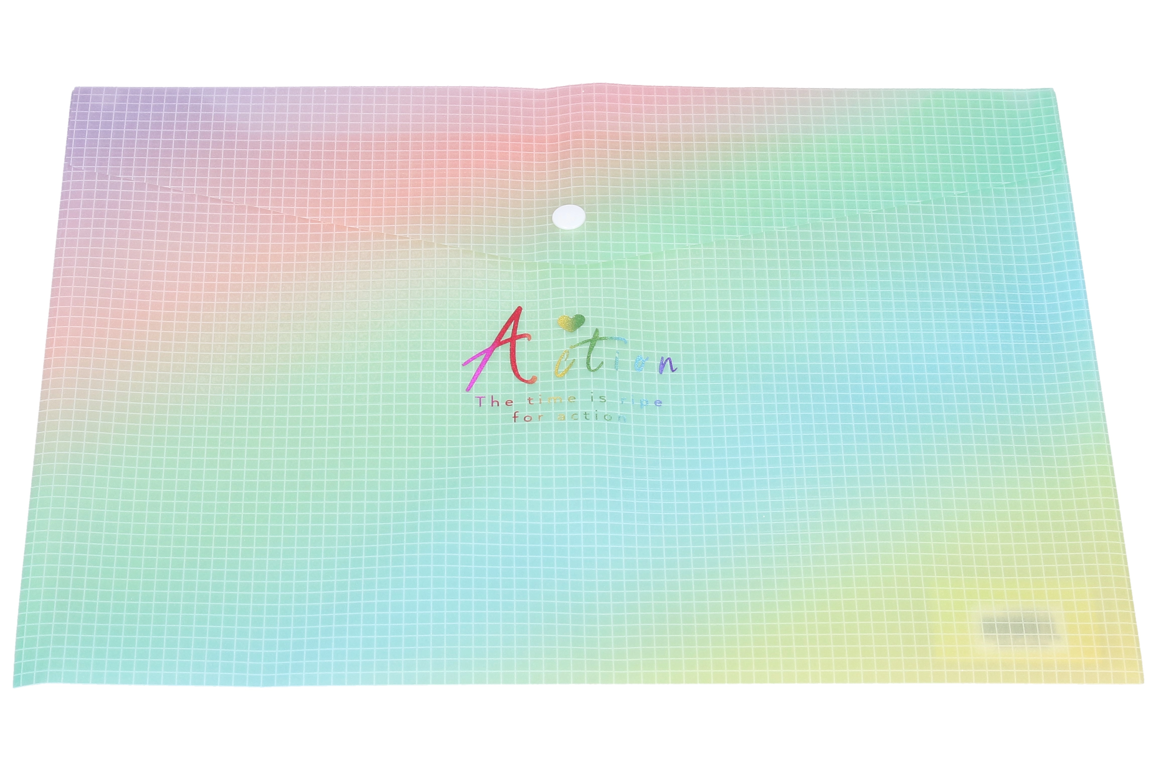 Wählen Sie aus mehreren attraktiven Pastell-Designs – Punkte, Gitter, Crackle-Effekt oder geometrische Formen. Das halbtransparente Material erleichtert die Identifizierung des Inhalts, einige Varianten verfügen zudem über ein Beschriftungsfenster. Das Maß 33 × 23 cm fasst bequem das Format A4 sowie lose Blätter, Hefte oder dünne Kataloge.