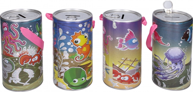 Niedliche Spardose mit dem Motiv Meereswelt, die Kindern und Erwachsenen hilft, stilvoll zu sparen. Kompakte Abmessungen von 15 × 8,3 cm und bis zu 4 attraktive Varianten für Freude an jeder zurückgelegten Münze.