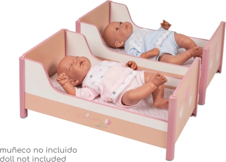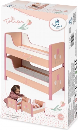 Holzpuppenbett 2-in-1 Tulipe: Etagenbett oder zwei separate Betten, 2 Matratzen, für Puppen bis 48 cm. Hochwertige Verarbeitung, ab 3 Jahren.