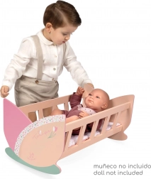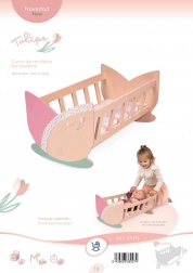 Die Wiege ist in einer Box in den Farben der Kollektion verpackt und erfreut jede kleine Puppenmama, die schönes spanisches Design und Liebe zum Detail zu schätzen weiß.