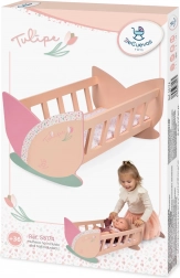 Die stilvolle Holzpuppenwiege aus der Kollektion TULIPE begeistert mit zarten Pastelltönen und floralem Motiv. Sie bietet präzise Verarbeitung, hochwertige Materialien (MDF, Massivholz, Metall) und ist ideal für Puppen bis 48 cm. Inklusive Matratze mit Blumenmuster. Ein tolles Accessoire für jedes Mädchenzimmer.