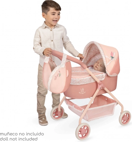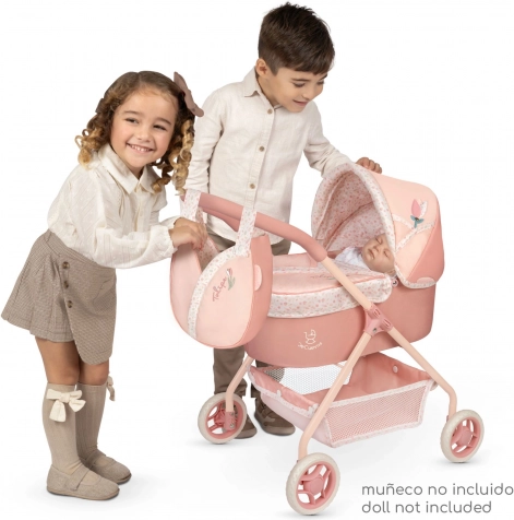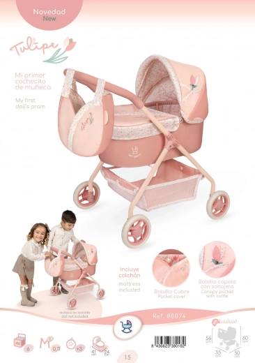 Der zauberhafte Puppenwagen aus der Tulipe-Kollektion verbindet wunderschönen spanischen Stil mit praktischen Details für den Alltag. Zarte lachsfarbene Pastelltöne mit Blumenmuster und die thematische Tulpen-Tasche machen ihn zu einem tollen Geschenk für Kinder ab 3 Jahren.