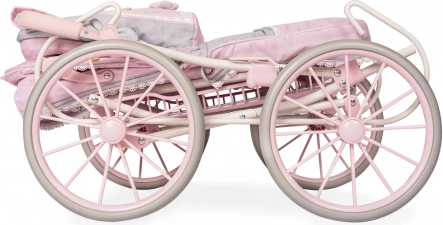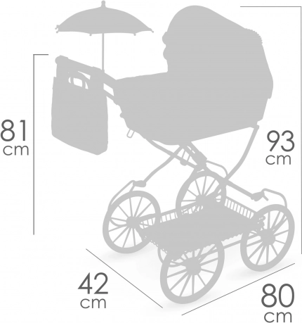 Die stabile Konstruktion aus Metall, Kunststoff und Textil ist leicht und einfach zu manövrieren. Das faltbare Verdeck, der praktische Ablagekorb und die Wippfedern sorgen für ein realitätsnahes Spielerlebnis. Die umfangreiche Ausstattung umfasst alles, was man für stilvolle Ausfahrten mit der Puppe braucht.