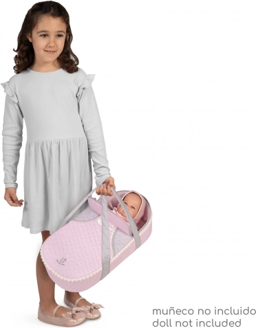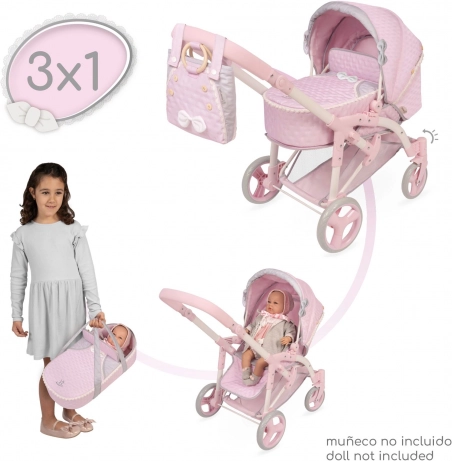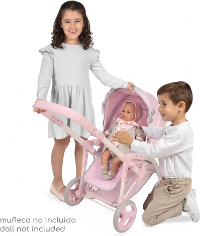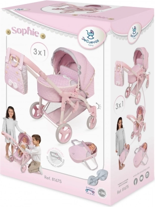 Dieser stilvolle Puppenwagen im zarten Sophie-Design erfreut jede kleine Mama. Er kombiniert praktische Funktionen mit schönen Details – die hellrosa Töne werden von grauen und weißen Spitzen sowie Schleifen ergänzt, die den romantischen Look unterstreichen. Dank der klappbaren Konstruktion ist er leicht zu transportieren und zu verstauen.