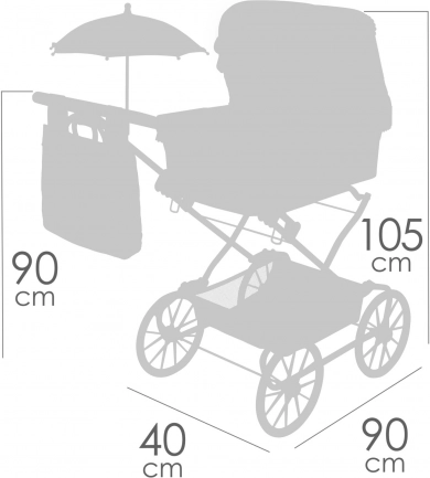 Die umfangreiche Ausstattung umfasst einen klappbaren Sonnenschirm, eine dekorative abnehmbare Tasche, eine Wannenabdeckung mit Druckknöpfen und Täschchen, eine weiche Matratze und eine Decke mit feinem Flausch. Der praktische Ablagekorb unten bietet Platz für Zubehör. Die robuste Metallkonstruktion in Kombination mit Textil und Kunststoff garantiert Langlebigkeit und einfache Pflege. Das Modell ist platzsparend zusammenklappbar und eignet sich für das Spielen zu Hause und im Freien.