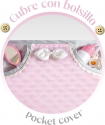 Die praktische Ausstattung umfasst eine abnehmbare Tasche für den Wagen oder zum Tragen in der Hand, eine Wannenabdeckung mit Ösen und kleinen Taschen, eine bequeme Matratze sowie unteren Stauraum für Kleinigkeiten. Spanisches Design und präzise Verarbeitung sorgen für lange Lebensdauer und täglichen Spielspaß.