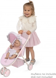 Entdecken Sie die zarte Sophie-Kollektion mit romantischen Details in Rosa, Grau und Weiß. Dieser sportliche Dreirad-Puppenwagen ist dank niedrigem Griff und einem Gewicht von nur 1,5 kg eine hervorragende Wahl für kleinere Kinder. Präzise Verarbeitung und spanisches Design gewährleisten eine lange Lebensdauer und komfortable Nutzung.