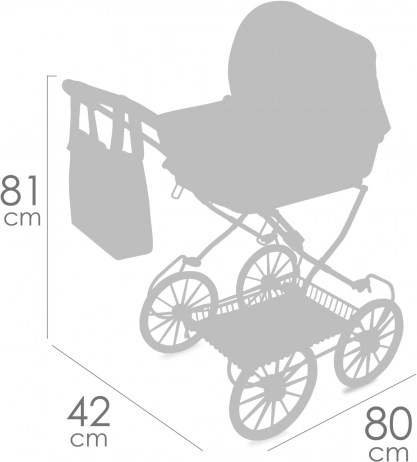 Die gepolsterte Wanne, das klappbare Verdeck und die Druckknopf-Abdeckung halten die Puppe sicher und gemütlich. Der Stil wird durch die abnehmbare Tasche im harmonierenden Design abgerundet.