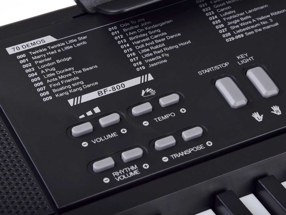 Wählen Sie aus 200 Klängen (Pianos, Orgeln, Streicher, Bläser bis hin zu modernen Synthesizern) und 200 Begleitstyles von Pop und Rock bis Jazz und Disco. Dazu kommen 70 Demo-Songs zur Inspiration und zum Lernen, die Funktion Record/Play zum Aufzeichnen eigener Ideen sowie ein Numeric Pad für schnelle numerische Eingaben.