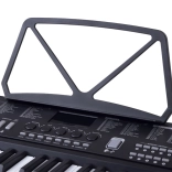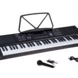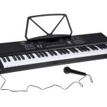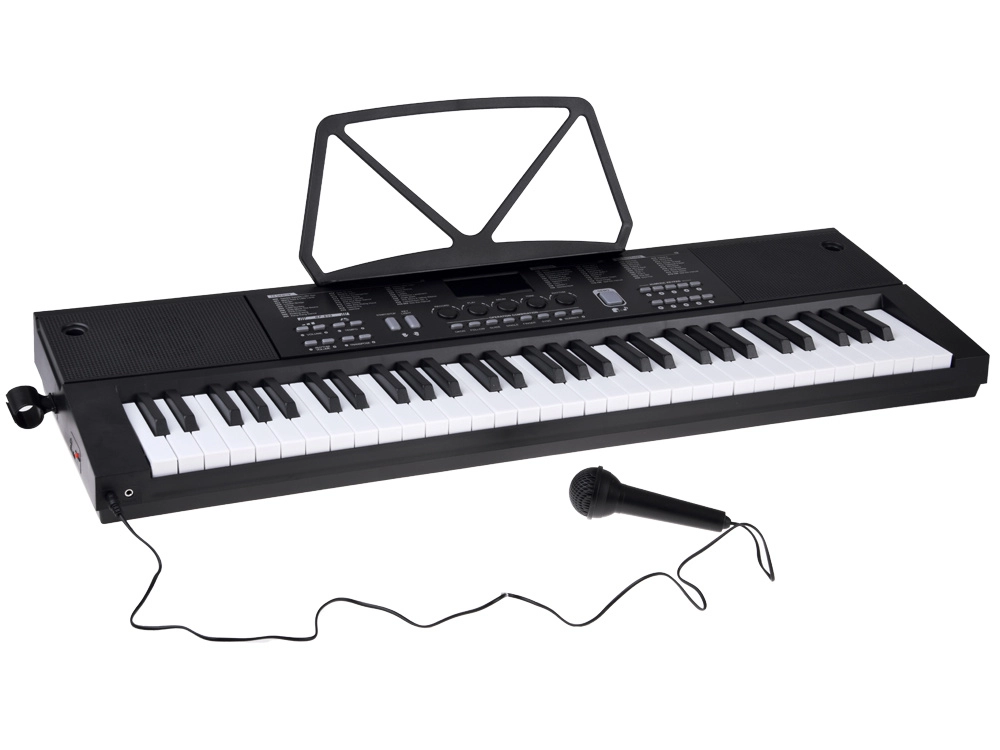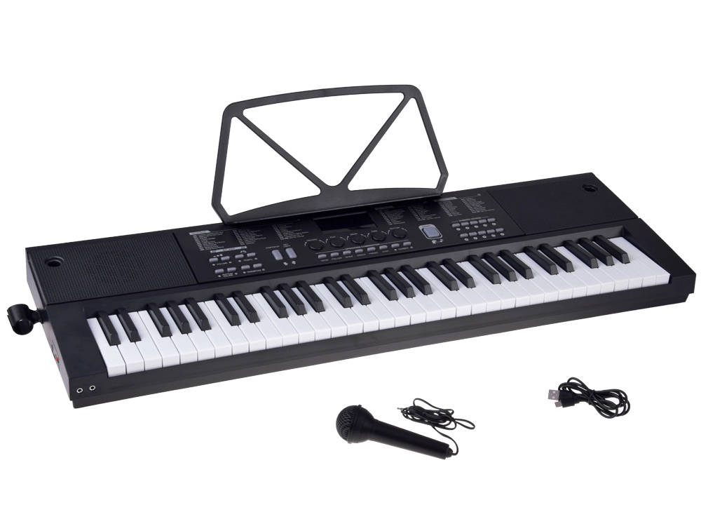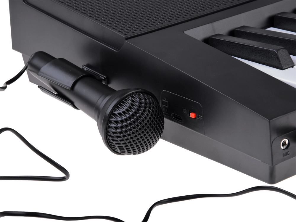 Praktische Konnektivität umfasst USB und einen Mikrofoneingang. Im Lieferumfang sind Mikrofon, Notenhalter und USB-Kabel enthalten. Dank kompakter Abmessungen, integrierter Lautsprecher und seitlichem Ein-/Ausschalter ist das Instrument jederzeit spielbereit.