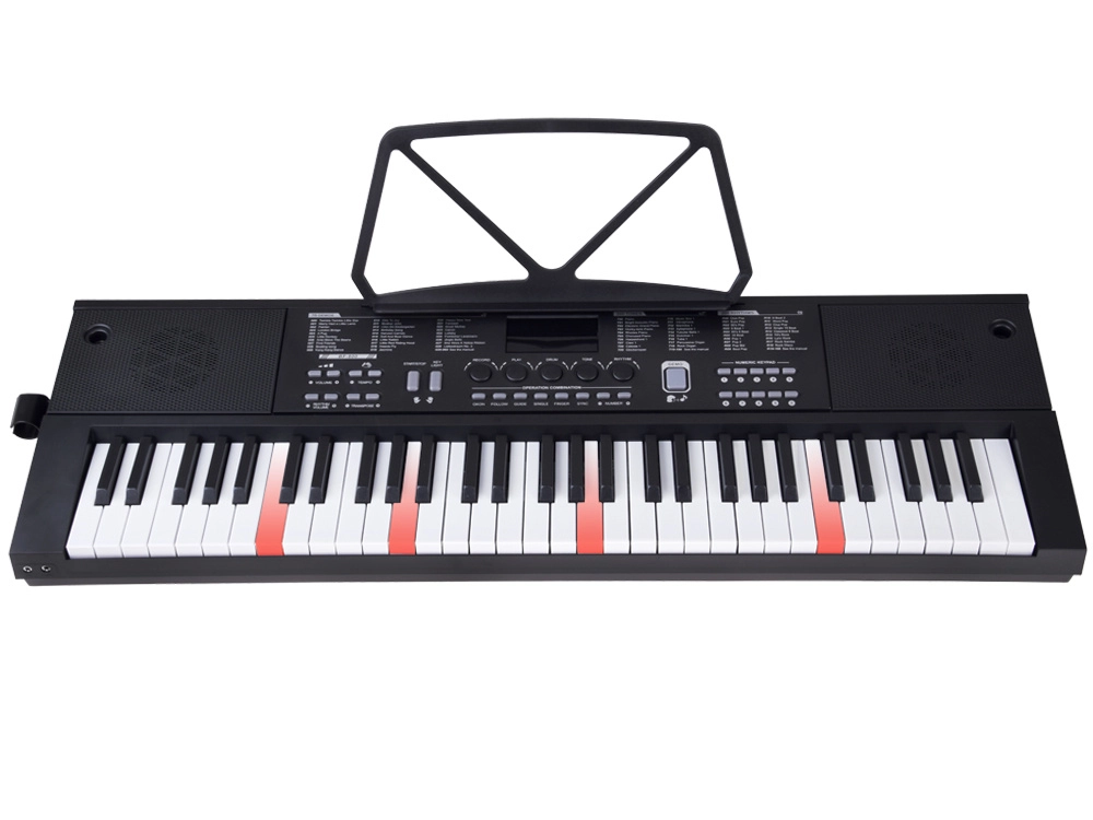 Dieses 61-Tasten-Keyboard kombiniert eine umfangreiche Ausstattung mit intuitiver Bedienung. Beleuchtete Tasten führen Ihr Spiel Schritt für Schritt, während das übersichtliche LCD-Display die Auswahl von Klängen, Rhythmen und Funktionen beschleunigt. Die Tastenoberfläche mit Holzmaserungs-Imitation sorgt für ein angenehmes Spielgefühl.