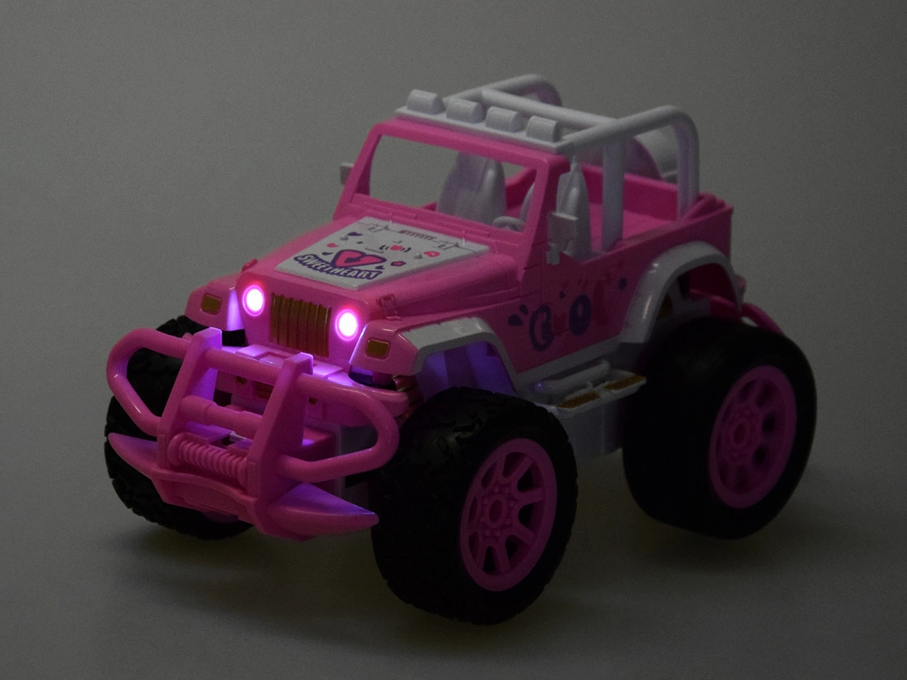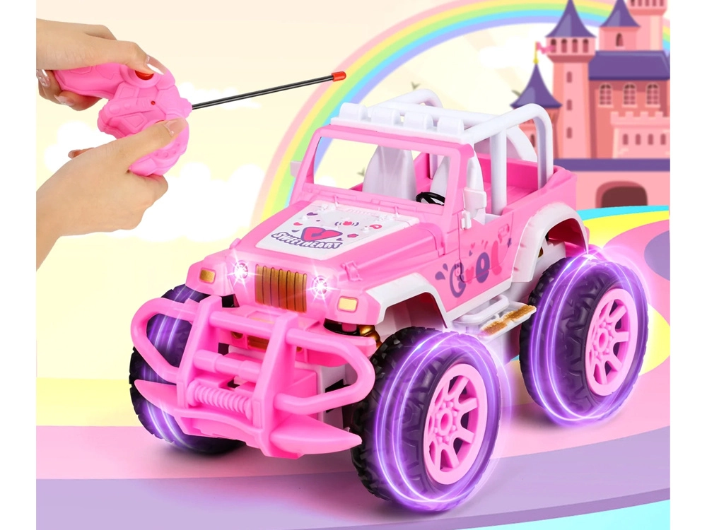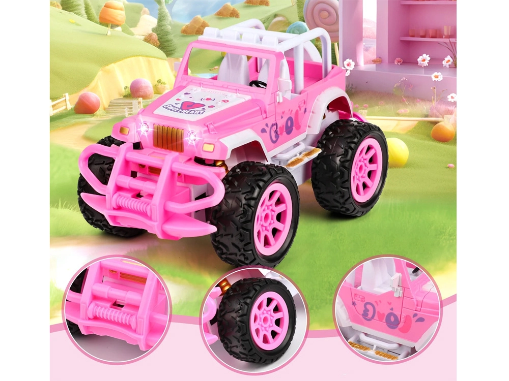 Das stylische rosa RC-Geländewagen für Kinder verbindet ein attraktives Design mit dynamischem Fahrspaß. Dank der einfachen Fernbedienung lernen Kinder schnell, vorwärts und rückwärts zu fahren sowie zu lenken, und fördern dabei Feinmotorik und logisches Denken. Lichteffekte machen die Fahrt realistischer und noch unterhaltsamer.