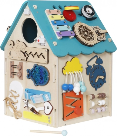 Türkises Montessori-Häuschen 2Kids Toys mit vielen Aktivitäten: Schlösser, Labyrinth, Xylophon, Uhr u. v. m. Fördert Feinmotorik, Logik und Selbstständigkeit. Ab 3 Jahren.