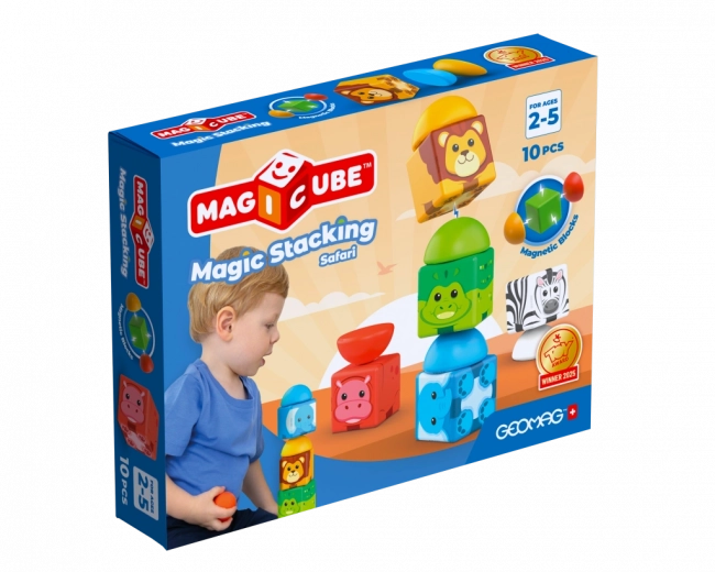 Die magnetische Bausteinwelt Geomag Magicube Safari bietet Kindern einen spielerischen und sicheren Einstieg in die Konstruktionswelt. Dank starker Magnete verbinden sich Würfel und Halbkugeln mühelos von allen Seiten, sodass auch die Kleinsten Tiere, Fahrzeuge und fantasievolle Formen bauen können. Die Auszeichnung auf der Spielwarenmesse in Nürnberg in der Kategorie Baby & Infant 2025 bestätigt Qualität und Beliebtheit.