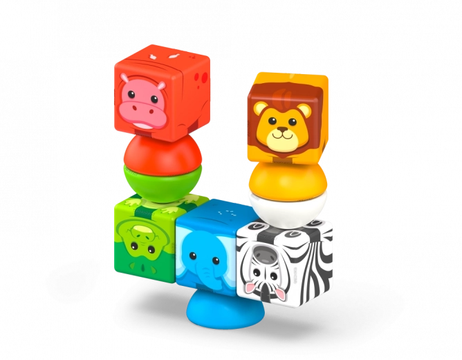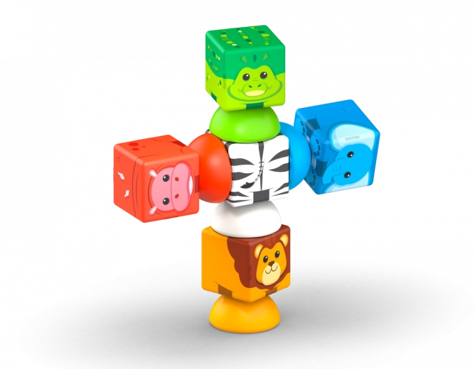 Das Set enthält 5 magnetische Würfel mit Safaritiermotiven und 5 farbige magnetische Halbkugeln. Die Teile sind robust, liegen gut in der Hand und sind für sicheres Spielen ab 2 Jahren konzipiert. Das Bauset ist vollständig mit anderen Sets der Magicube-Reihe kompatibel, sodass die Fantasiewelt stetig wachsen kann.