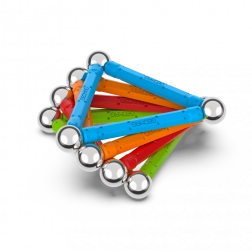 Das Set mit 12 farbigen Magnetstäbchen und 12 Stahlkugeln ermöglicht das einfache Zusammenbauen von Formen, Türmen und einfachen Modellen – ideal zur Förderung von Fantasie und räumlichem Vorstellungsvermögen.