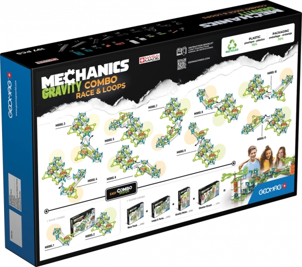 Bauen Sie Ihre eigenen Gravitationsbahnen und Murmelrennen mit dem GEOMAG Mechanics Gravity Combo Set. Aus 197 Teilen erstellen Sie im Handumdrehen bis zu 11 verschiedene Strecken mit Loopings, Kurven und Auslösern. Das aus recyceltem Kunststoff gefertigte Spielzeug, hergestellt in der Schweiz, fördert spielerisch Logik, Kreativität und physikalisches Verständnis. Geeignet ab 8 Jahren.