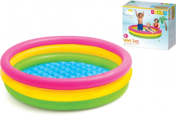 Der aufblasbare Kinderpool mit einem Durchmesser von 147 cm und einer Höhe von 33 cm ist die ideale Wahl für heiße Sommertage. Intensive Farben in Pink, Gelb und Grün ziehen jedes Kind an und verwandeln jeden Raum in ein kleines Wasserparadies.