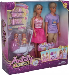 Puppe, Ehemann, 2 Babys, Kinderwagen, Babyzubehör