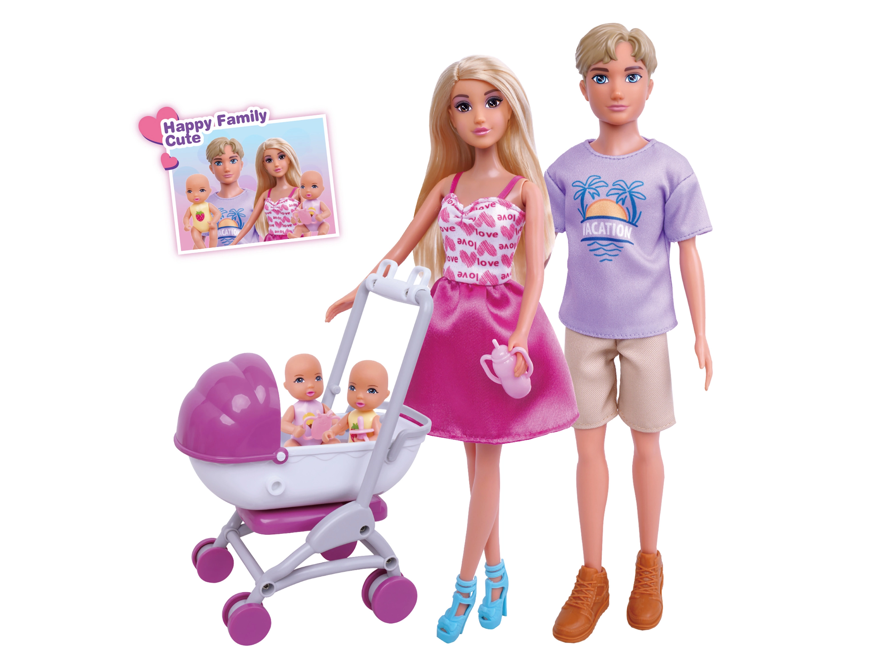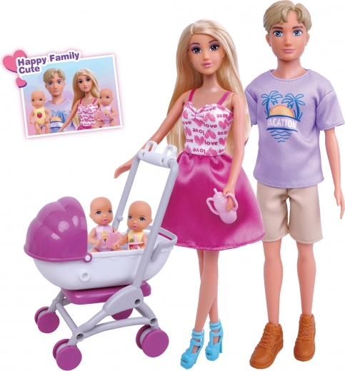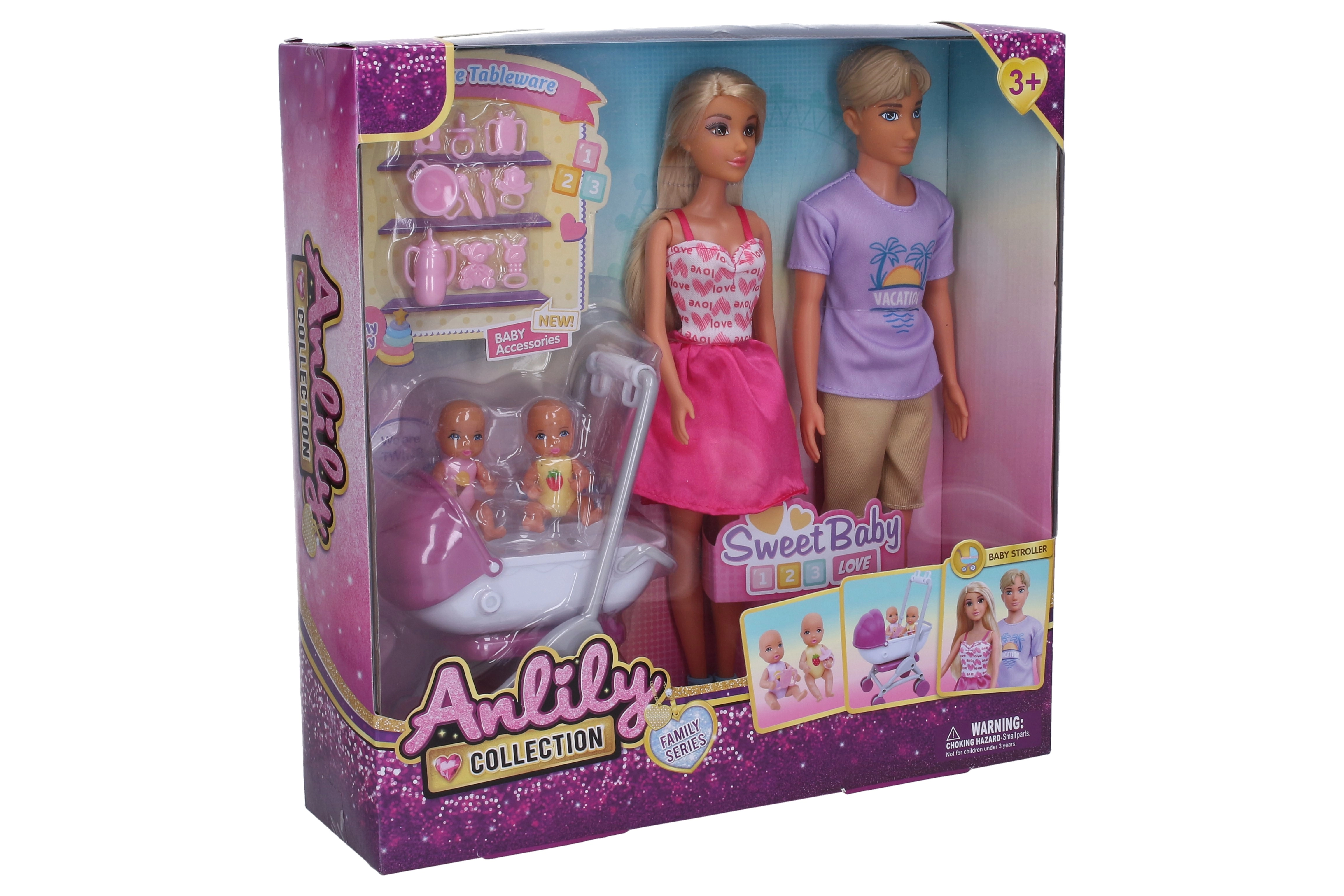 • Komplettes Familien-Set: 30 cm Puppe, Ehemann, 2 Babys, Kinderwagen und Zubehör