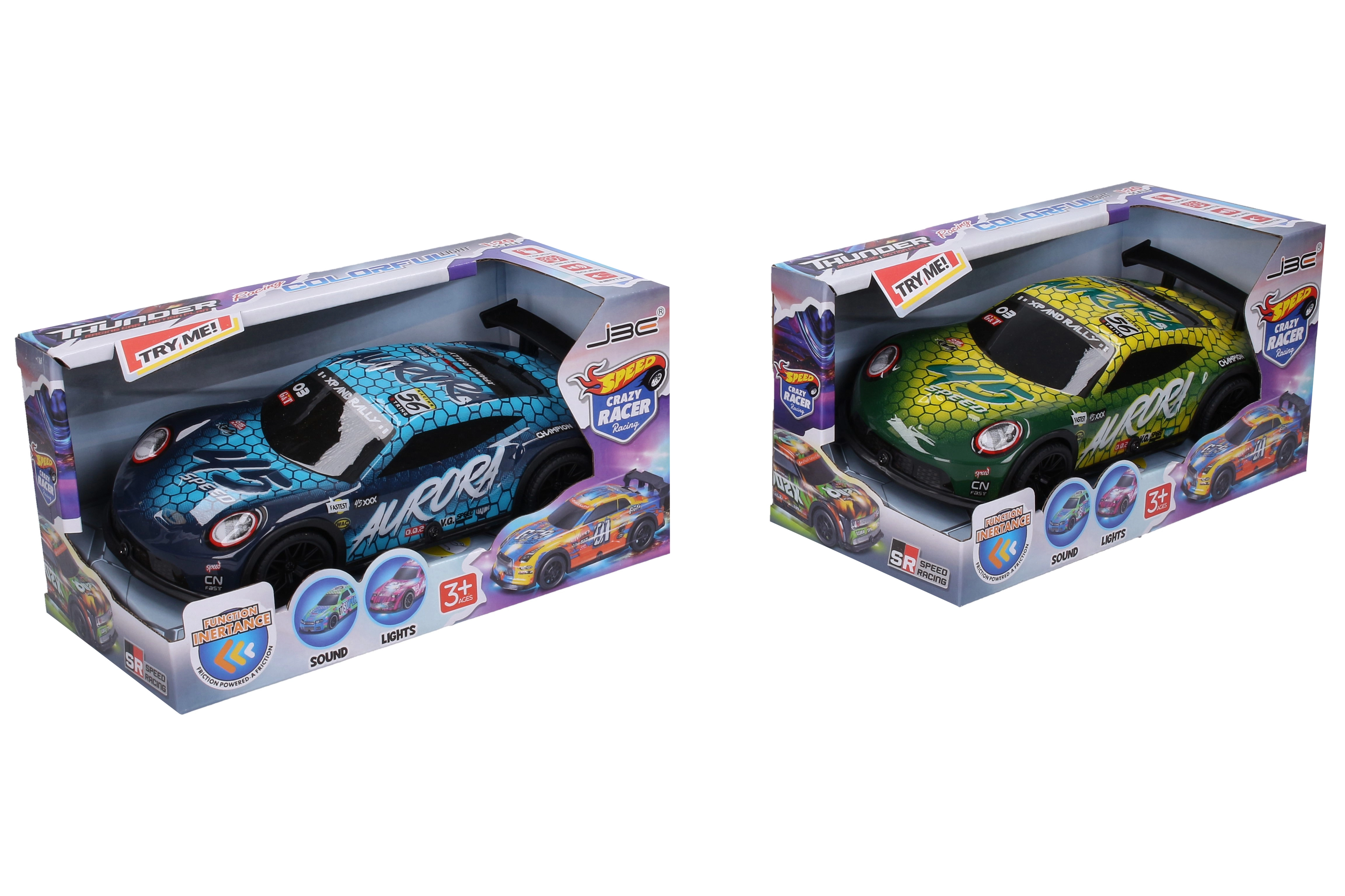 Das Modell ist in 2 Farbvarianten erhältlich – grün und blau. Die Batterien AG13/LR44 (4×) sind im Lieferumfang enthalten, sodass Kinder direkt nach dem Auspacken loslegen können. Ein tolles Geschenk für kleine Rennfahrer und Auto-Fans.