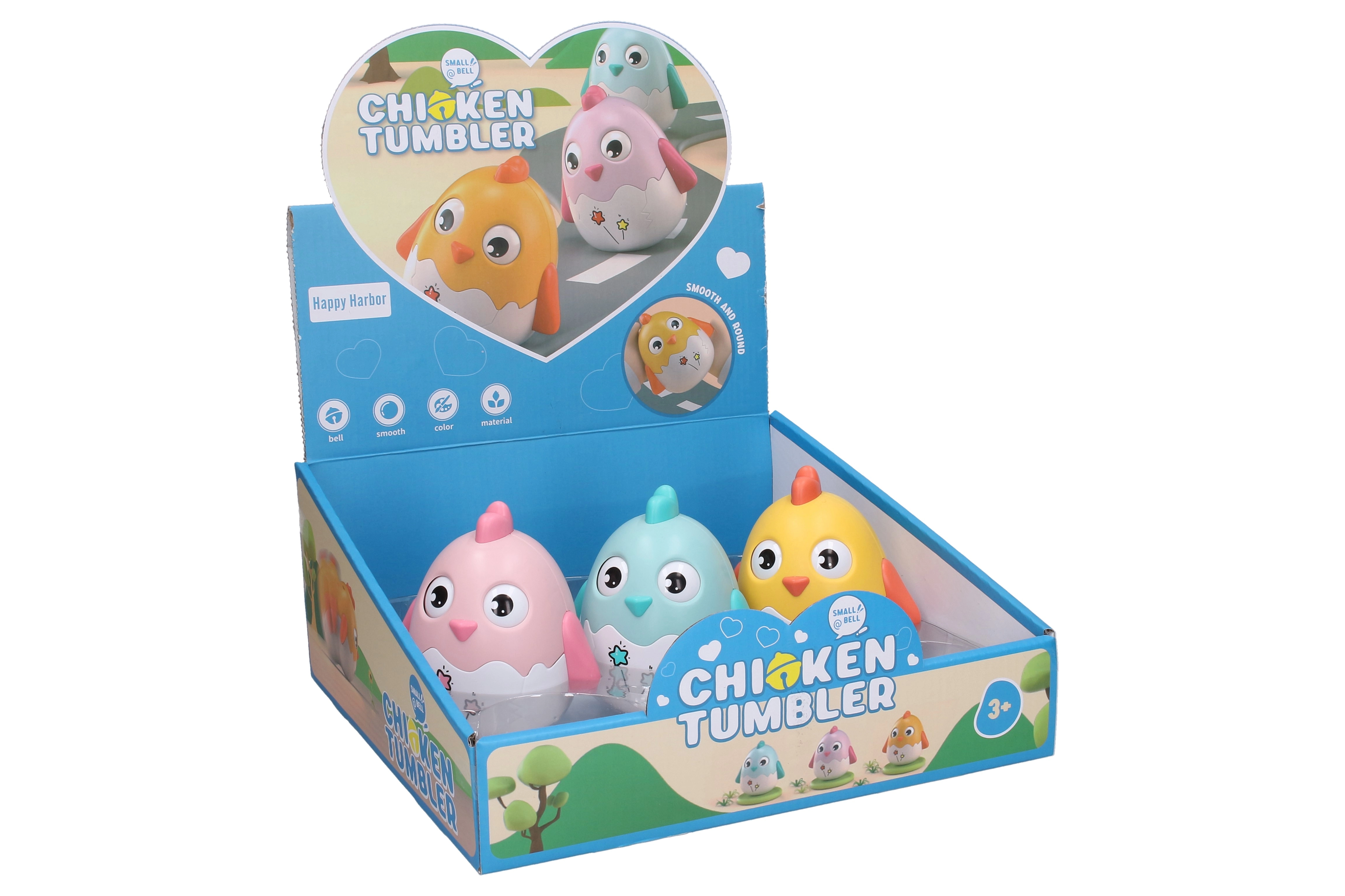 Das wippende „Roly-Poly“-Hühnchen wurde entwickelt, um Kinder zum Entdecken zu motivieren und ihre Sinne zu fördern. Bei Berührung schaukelt es von Seite zu Seite und kehrt stets in die aufrechte Position zurück, was Neugier und Feinmotorik anregt. Die integrierten Glöckchen erzeugen einen angenehmen Klang, der die auditive Wahrnehmung unterstützt.