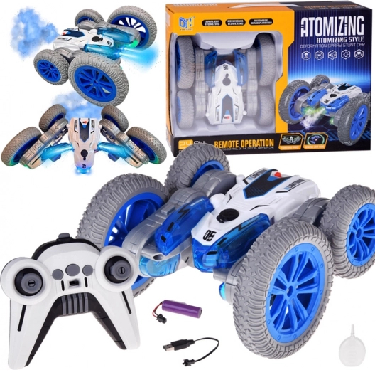 Dieses Stunt-RC-Auto ist gemacht für Adrenalin-Fahrten zu Hause und auf glatten Außenflächen. Dank der großen Räder und der wendigen Konstruktion beherrscht es Überschläge, das Fahren auf „Bauch und Rücken“, schnelle Richtungswechsel und eindrucksvolle 360°-Rotationen. Der Effekt aus beleuchtetem Wasserdampf und zweifarbigen LEDs verleiht der Fahrt eine besonders attraktive Optik.