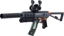 Das Modell MK7 begeistert alle, die Action lieben. Dank des 7,4-V-Li-Akkus ist es bereit für langes Spielen ohne unnötige Unterbrechungen. Austauschbare Magazine ermöglichen einen schnellen Munitionswechsel, während das optische Visier präzisere Treffer unterstützt. Die klappbare Schulterstütze verleiht der Waffe einen taktischen Charakter und lässt sich bequem an den Spieler anpassen.