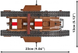 Baue den ikonischen britischen Panzer MARK V (Male) im Maßstab 1:35 aus 844 hochwertigen Teilen von COBI. Das Modell bietet bewegliche Ketten, drehbare Geschütze, zu öffnende Luken und eine Figur eines britischen Offiziers. Ideal für Liebhaber militärischer Geschichte und Bausatzsammler.