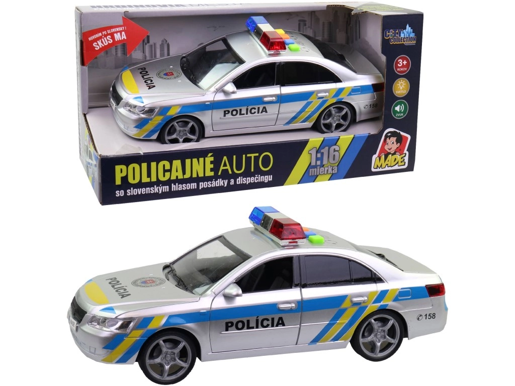 Machen Sie kleinen Polizistinnen und Polizisten eine Freude mit diesem detailreich gestalteten Polizeiauto in den Farben der slowakischen Polizei. Das Modell ist mit Blaulicht und slowakischen Sprachaufnahmen der Leitstelle und der Besatzung ausgestattet – für extra Authentizität beim Spielen. Ideal für actionreiche Verfolgungsjagden und spannende Einsätze.
