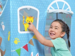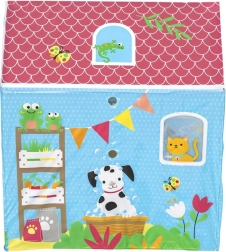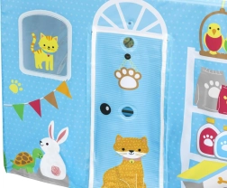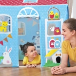 Fröhliche Farben und Tierdrucke verleihen dem Häuschen einen spielerischen Charakter und ziehen jedes Kind zum Spaß und Entdecken an.