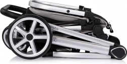Für den Komfort des Kindes gibt es eine verstellbare Rückenlehne (3 Positionen), einen gepolsterten 5-Punkt-Gurt und einen abnehmbaren Sicherheitsbügel aus Eco-Leder. Eltern schätzen den höhenverstellbaren Griff mit Sicherheitsschlaufe fürs Handgelenk, den großen Aufbewahrungskorb sowie das Verdeck mit Sichtfenster und Sonnenblende. Die Hinterräder verfügen über eine verbundene Bremse und eine Arretierung verleiht der Sitzeinheit und der Wanne zusätzliche Stabilität. Der Kinderwagen erfüllt die europäischen Normen EN1888-1 und EN1888-2.